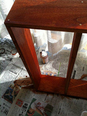 さて。ニス塗りをします。うっ 色選びを間違えてなんか和風……。負けません。