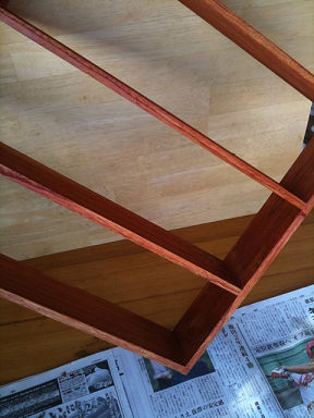 つくりたかったのは、作業机に置く『プチシェルフ』。(プチシェルフつくるんだぁv っていったらほくさんが『プチルシフェルだなんてまた中二なこと言ってるとおもった』みたいないいがかりをつけてきた)作業中はこまかいものがちらかったりするので、糸やら針山やらちいさいハサミやらを気軽における棚がほしかったのです。